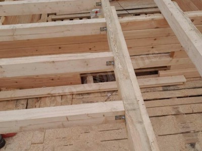 Стыковка бруса происходит при помощи замка «шип-паз» с дополнительным использованием длинного крепежа из металла, который буравит насквозь несколько рядов. Такой способ крепления обеспечивает высокую прочность коробки, а также увеличивается скорость прохождения стадии усадки.