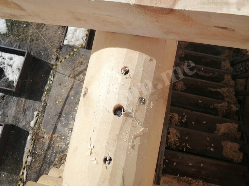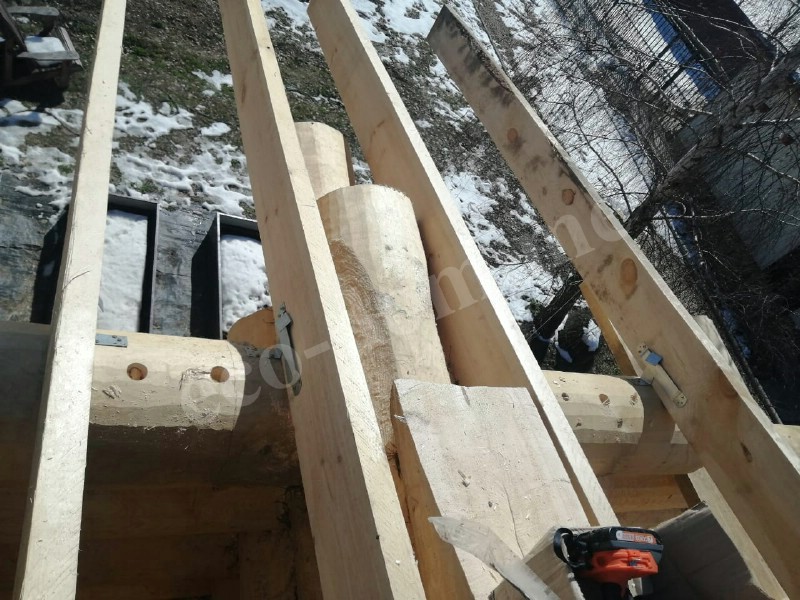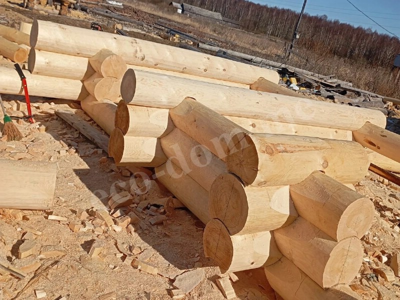Бревна укладываются вручную. Каждое подгоняется по месту. Применяется правило: одно бревно — одна позиция. Повторное использование не допускается. При сборке контролируется вертикаль, проверяется уровень, устраняются перекосы. Погрешности компенсируются подгонкой.