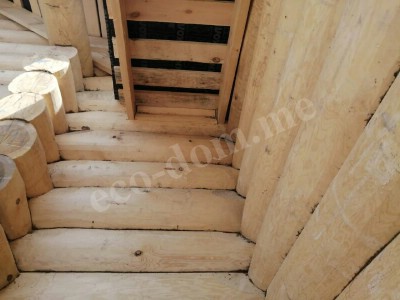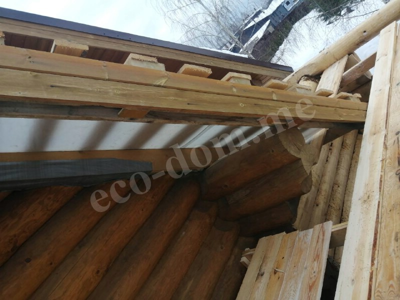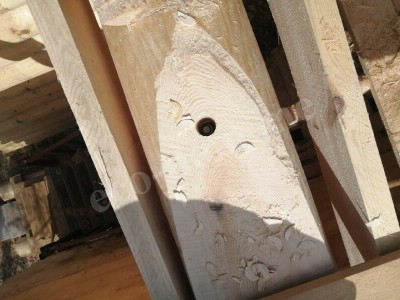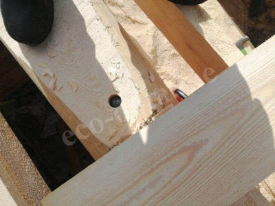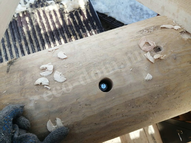 По всей длине нижней части бревна вырезается паз — компенсационный или изоляционный. В этот паз укладывается утеплитель. Форма паза — полукруглая или треугольная. Ширина паза составляет от 3 до 5 см. Он обеспечивает плотное прилегание верхнего бревна к нижнему.