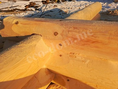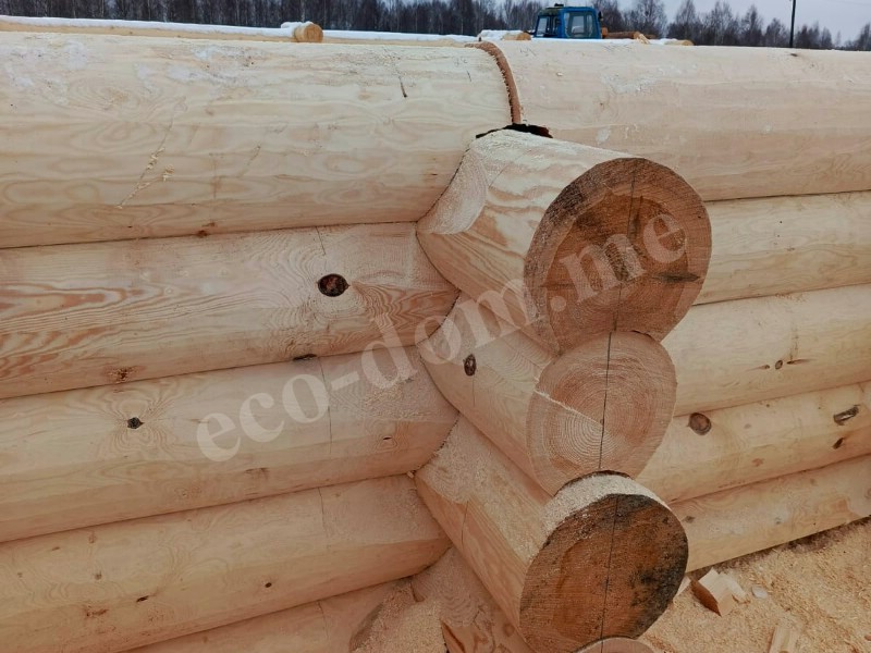 Каждое бревно укладывается с учётом его формы. Геометрия сохраняется без строгой обработки: не используется оцилиндровка, не срезаются края. Характерная черта метода – сохранение заболони (наружного слоя древесины). Толщина заболони составляет до 3–4 см. Этот слой защищает от осадков, перегрева и рассыхания.