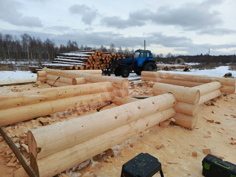 Отбираются хвойные деревья. Используются сосна, лиственница, ель, кедр. Применяются только зрелые деревья диаметром от 28 до 45 см. Идеальный вариант — зимняя заготовка, когда движение сока прекращается. Такая древесина меньше трескается, меньше коробится. Лучше сохраняется при хранении. Экодом заготавливает древесину зимой в Костромской области.