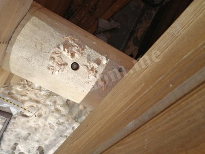 После завершения сруба конструкция накрывается временной кровлей. Дом оставляется на период усадки. Продолжительность — от 6 до 14 месяцев. В это время древесина даёт усадку, изменяется геометрия. Важно, чтобы все элементы прошли естественную стабилизацию. Только после усадки возможна установка окон, дверей, черновых полов и инженерных систем.