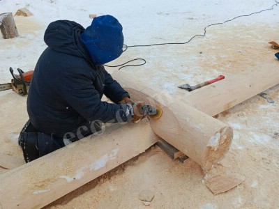 Каждое бревно размечается по шаблону. В местах пересечения бревен вырезаются угловые соединения — чаши. В канадской рубке используется замок «ласточкин хвост» с расширением внутрь. Это позволяет стыковать бревна без зазоров. Ширина чаши зависит от диаметра ствола. На этом этапе важна точность. Мастера Экодома все делают идеально, с точностью до миллиметра.