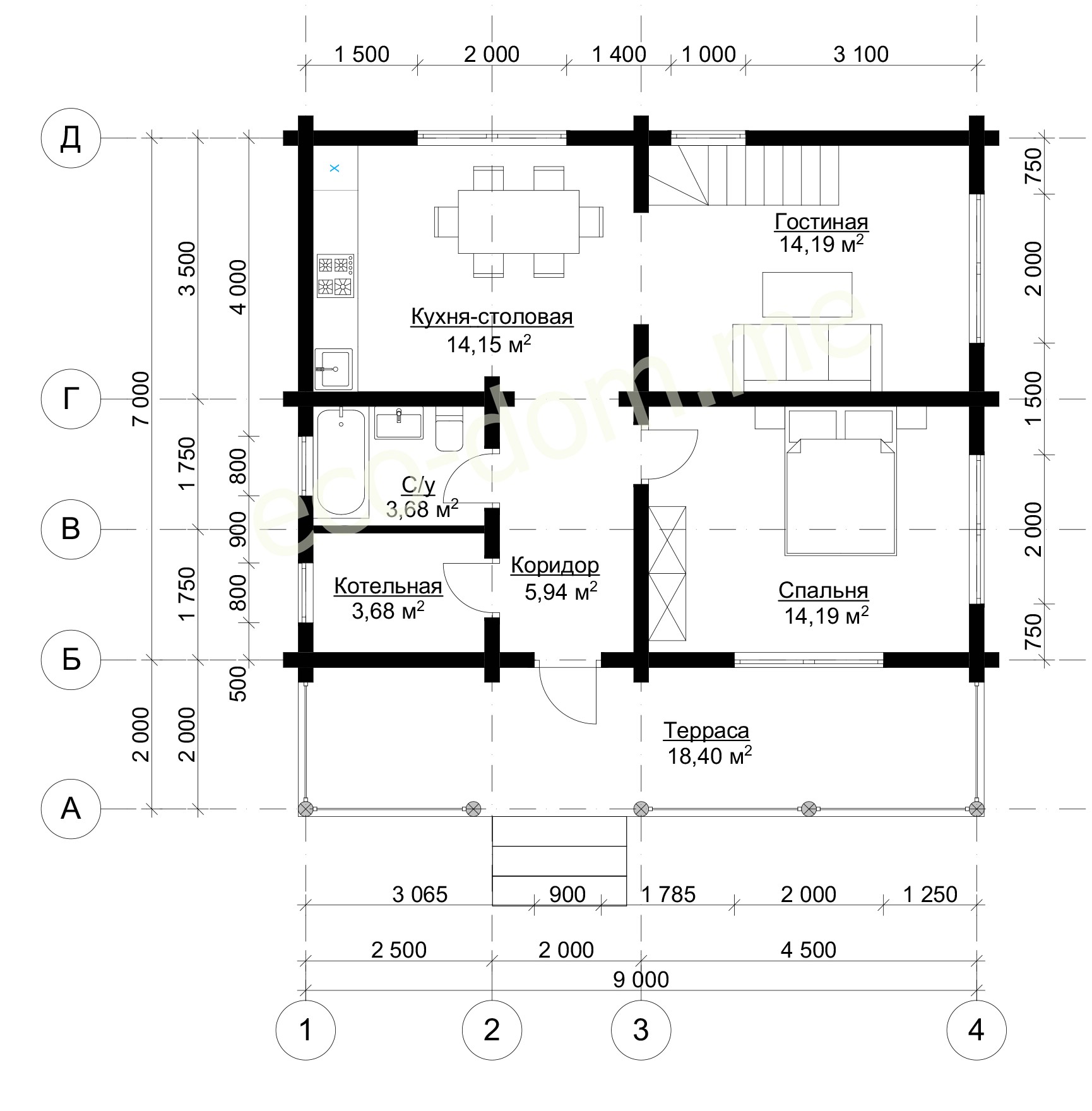 План схема Дом из бревна 6 на 9 № ДиБ-04