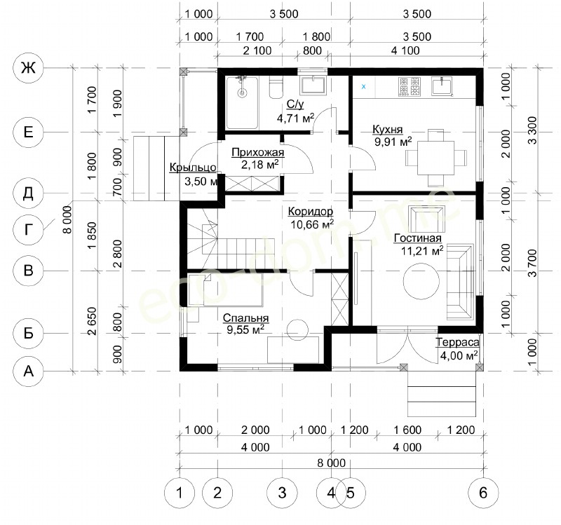 Проект дома из бруса 8х8 № ДБ-62 Проект дома из бруса 8х8 № ДБ-62