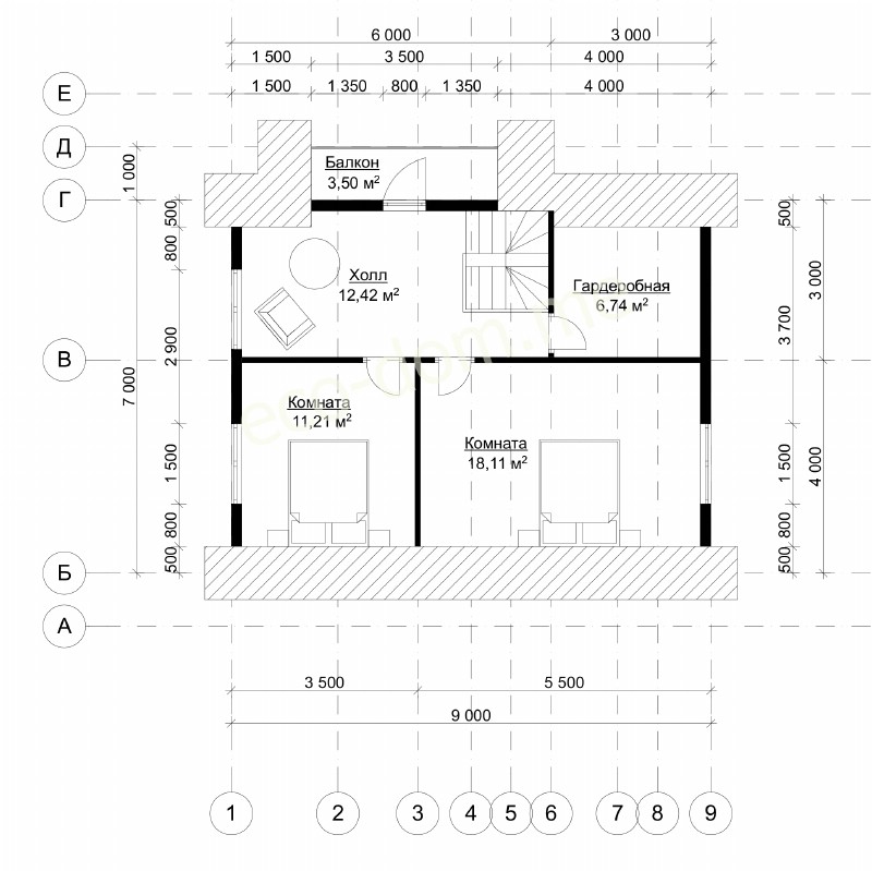 План схема Проект дома из бруса 10х9 № ДБ-67