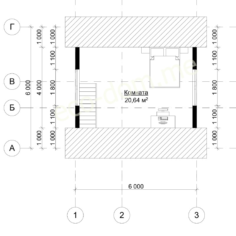 План схема Проект дома из бруса 6х6 № ДБ-55