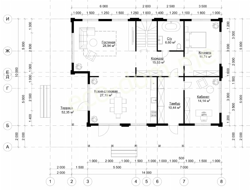 План схема Проект дома из клееного бруса под ключ ДиКБ-03
