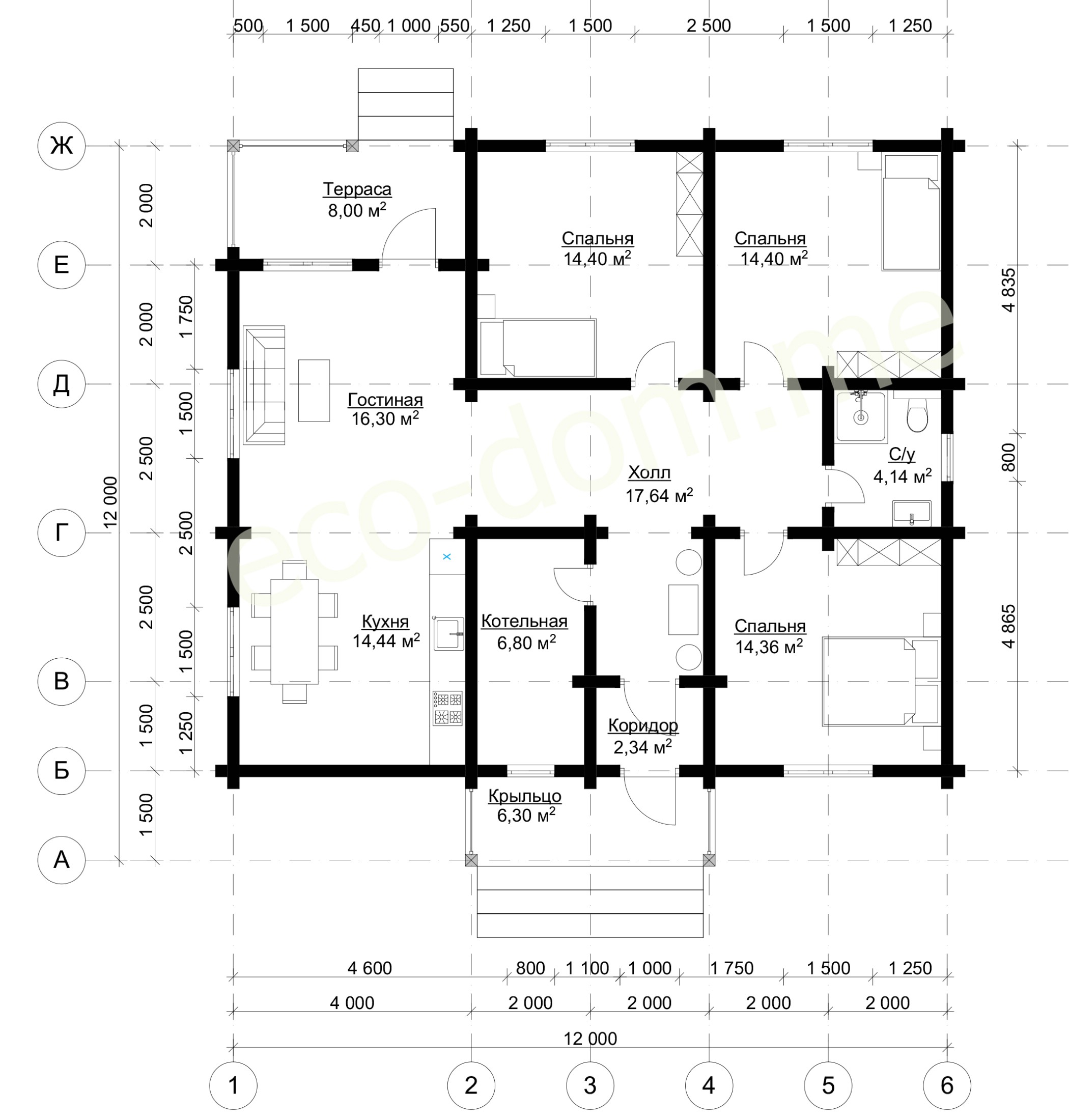 Проект элитного дома из бруса № ЭД-141