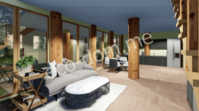 5. Имитация бруса 135*15 мм обшитие внутренней части дома по стропилам;