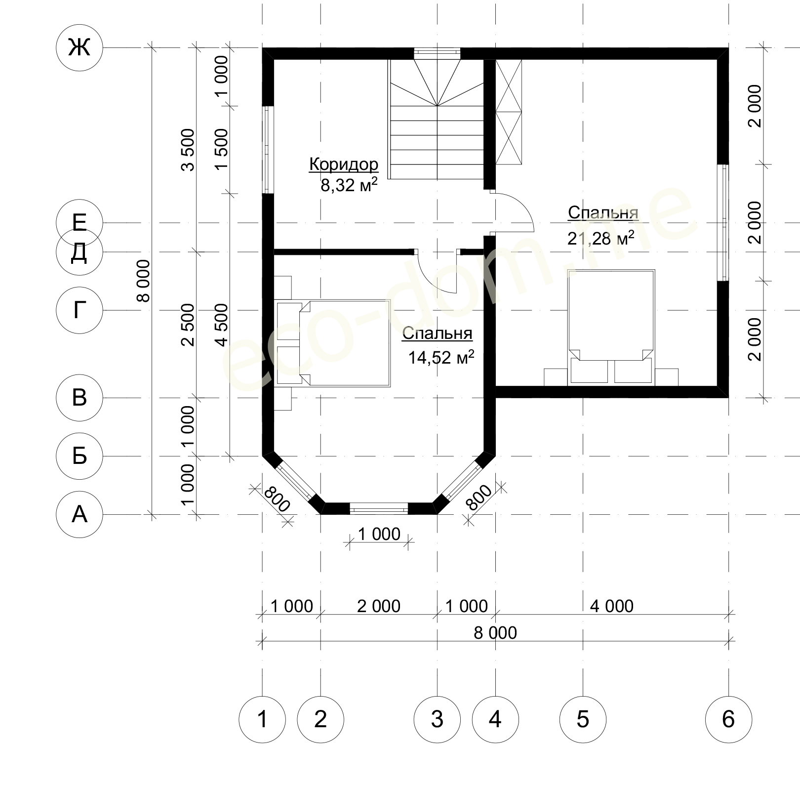 Высота стен второго этажа 1.5 метра.