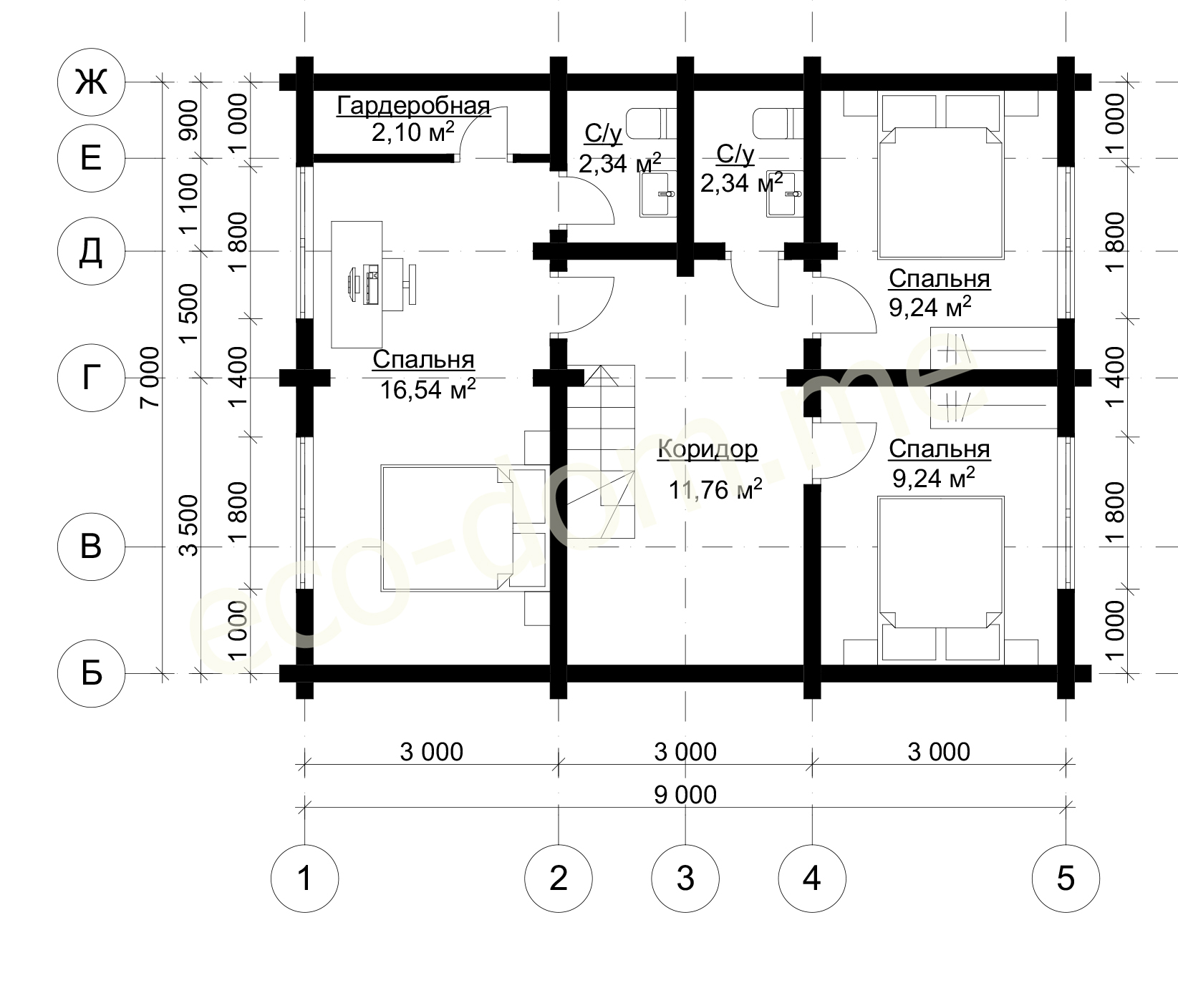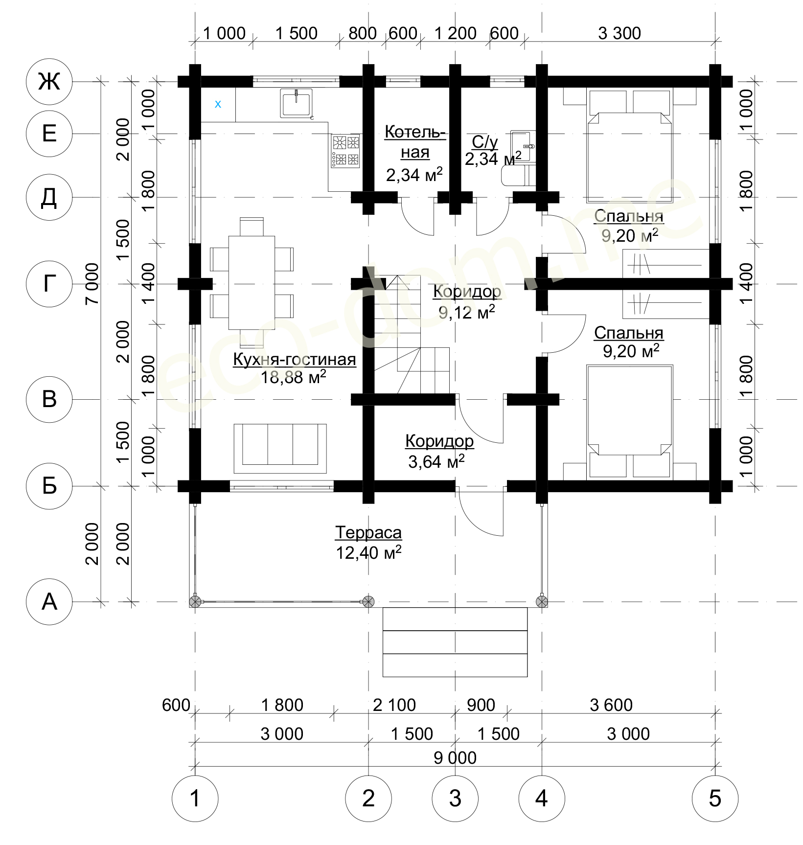 План схема Проект дома из бревна 8х9 № ДиБ-52