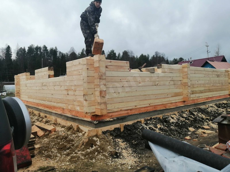 - технология ручной рубки предполагает возведение стен на ленточном фундаменте, который удобен при проведении коммуникаций в дом;