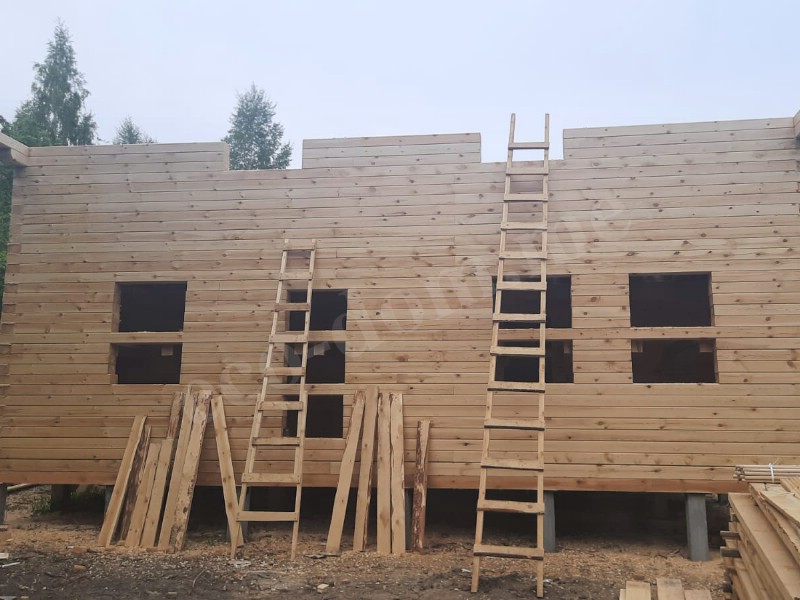 - Заготовка древесины, в процессе которой брёвна обрабатываются при помощи антисептика, который придаёт материалу водоотталкивающие свойства, а также надёжно защищает от порчи вредителями.