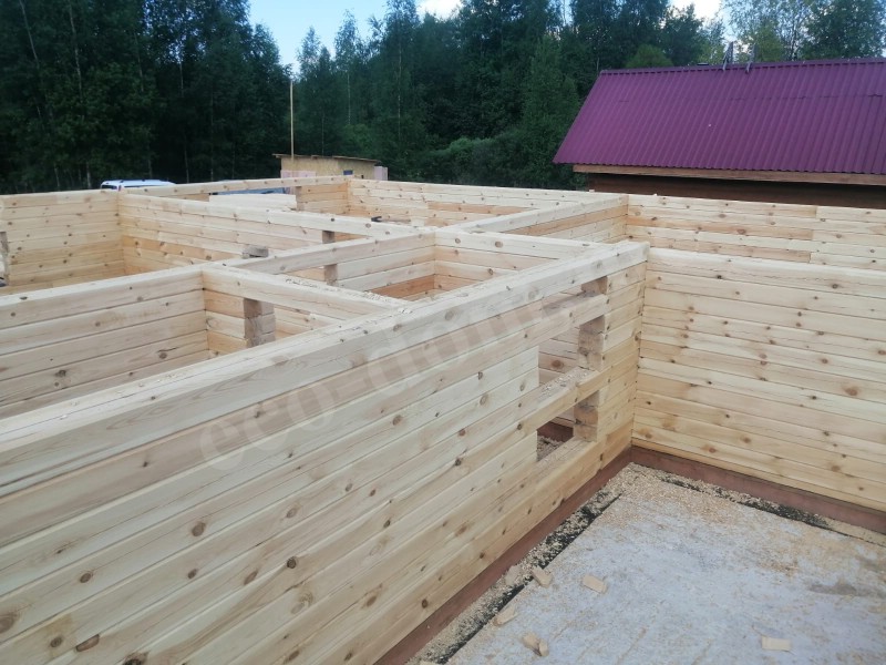 - Следующим этапом выполняется обвязка и возводятся стены.