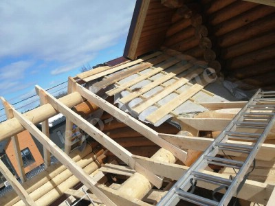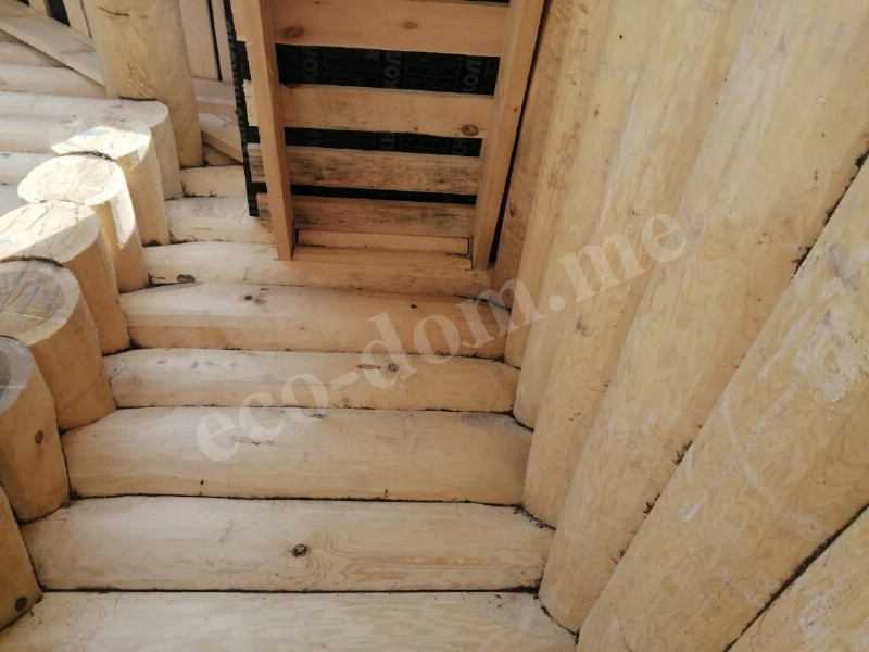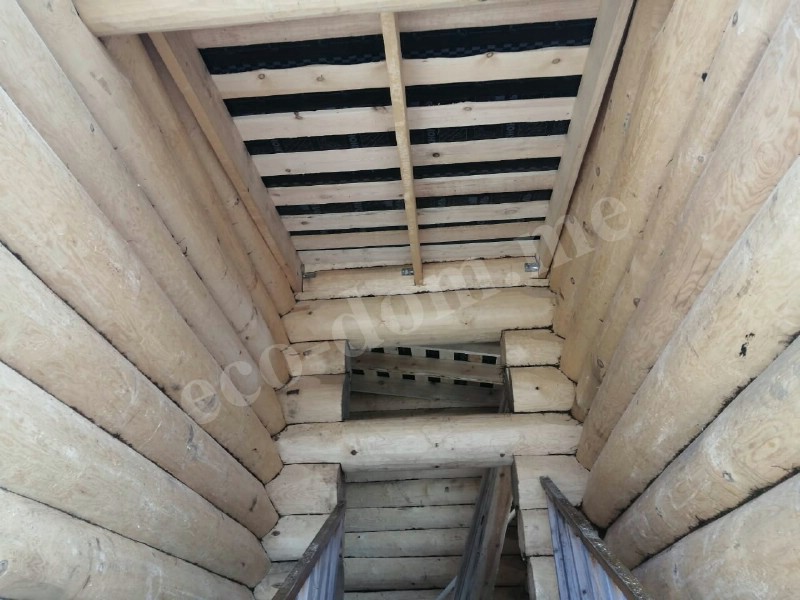 После завершения сруба конструкция накрывается временной кровлей. Дом оставляется на период усадки. Продолжительность — от 6 до 14 месяцев. В это время древесина даёт усадку, изменяется геометрия. Важно, чтобы все элементы прошли естественную стабилизацию. Только после усадки возможна установка окон, дверей, черновых полов и инженерных систем.