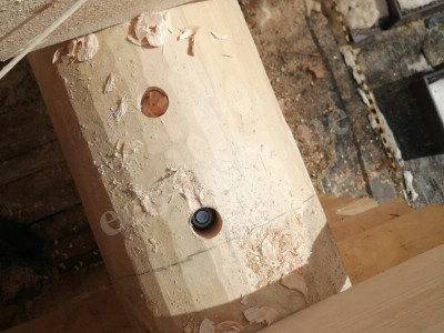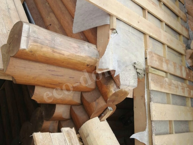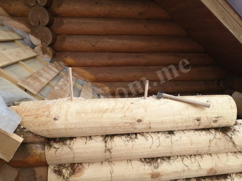 По всей длине нижней части бревна вырезается паз — компенсационный или изоляционный. В этот паз укладывается утеплитель. Форма паза — полукруглая или треугольная. Ширина паза составляет от 3 до 5 см. Он обеспечивает плотное прилегание верхнего бревна к нижнему.