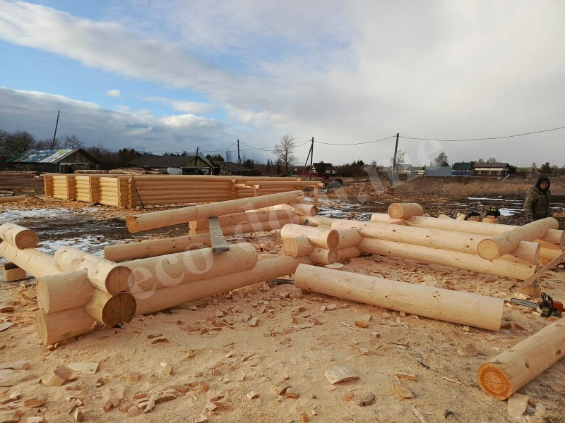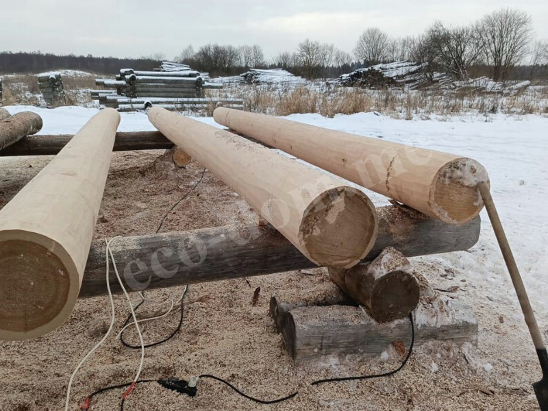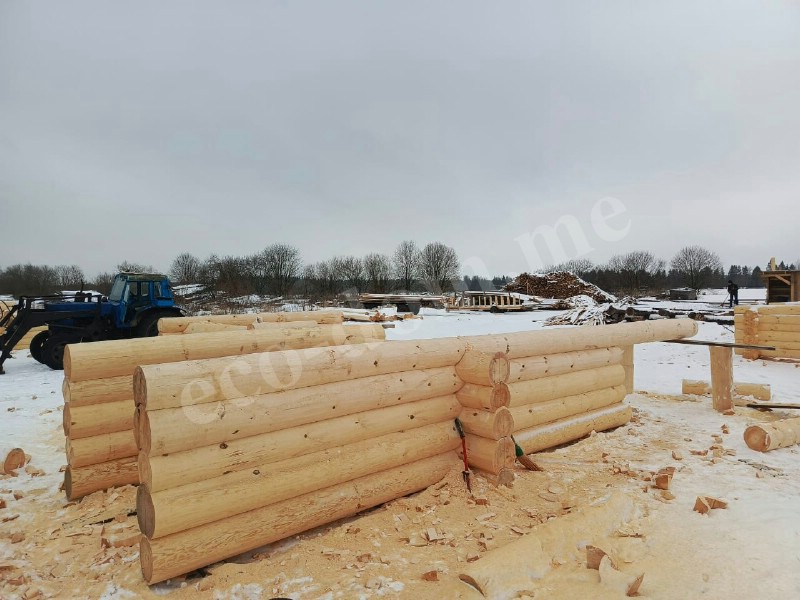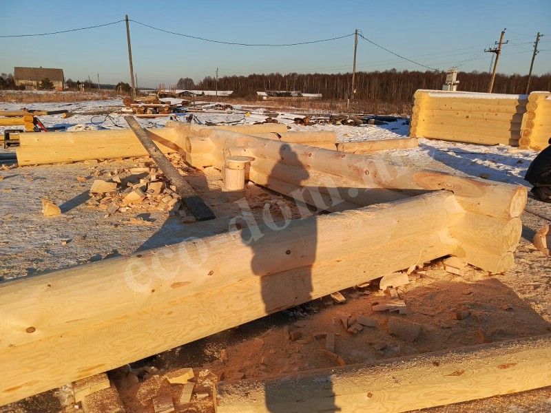Отбираются хвойные деревья. Используются сосна, лиственница, ель, кедр. Применяются только зрелые деревья диаметром от 28 до 45 см. Идеальный вариант — зимняя заготовка, когда движение сока прекращается. Такая древесина меньше трескается, меньше коробится. Лучше сохраняется при хранении. Экодом заготавливает древесину зимой в Костромской области.