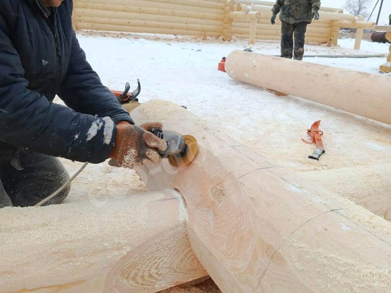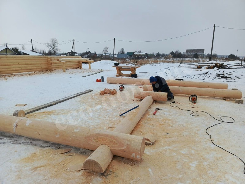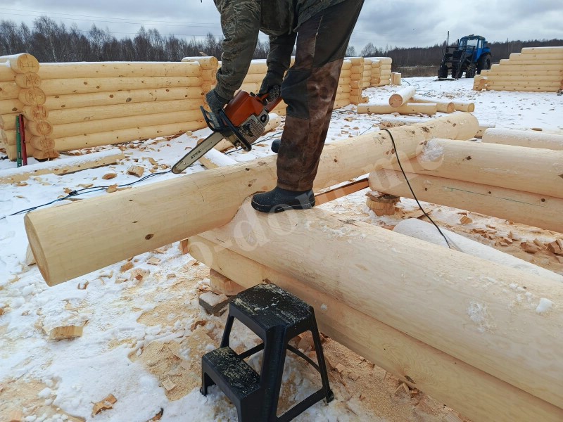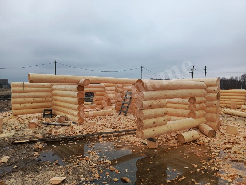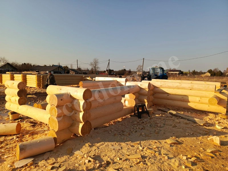 Бревна укладываются вручную. Каждое подгоняется по месту. Применяется правило: одно бревно — одна позиция. Повторное использование не допускается. При сборке контролируется вертикаль, проверяется уровень, устраняются перекосы. Погрешности компенсируются подгонкой.