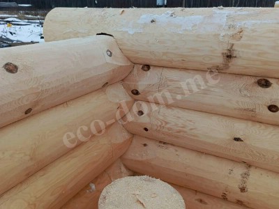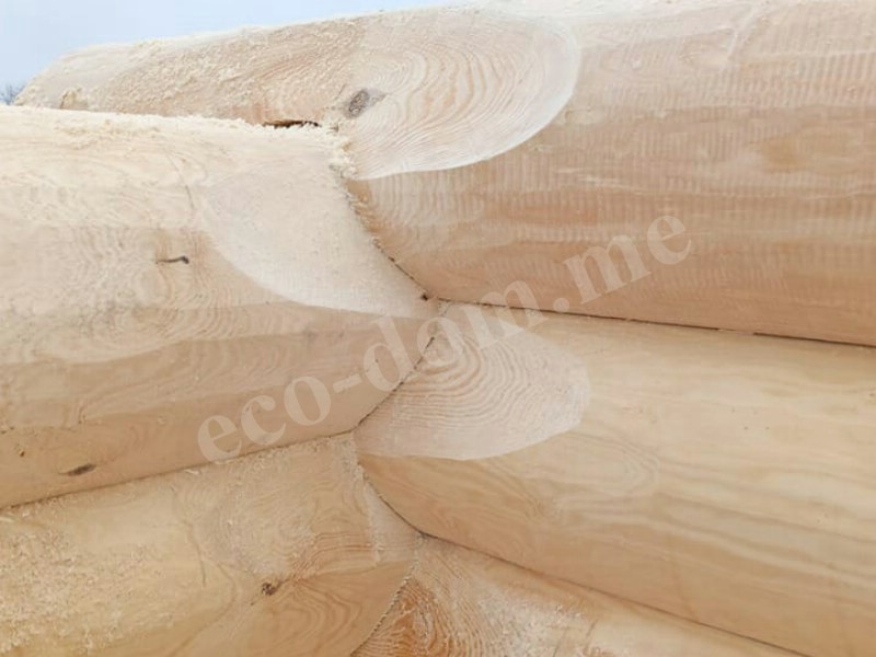 Каждое бревно укладывается с учётом его формы. Геометрия сохраняется без строгой обработки: не используется оцилиндровка, не срезаются края. Характерная черта метода – сохранение заболони (наружного слоя древесины). Толщина заболони составляет до 3–4 см. Этот слой защищает от осадков, перегрева и рассыхания.