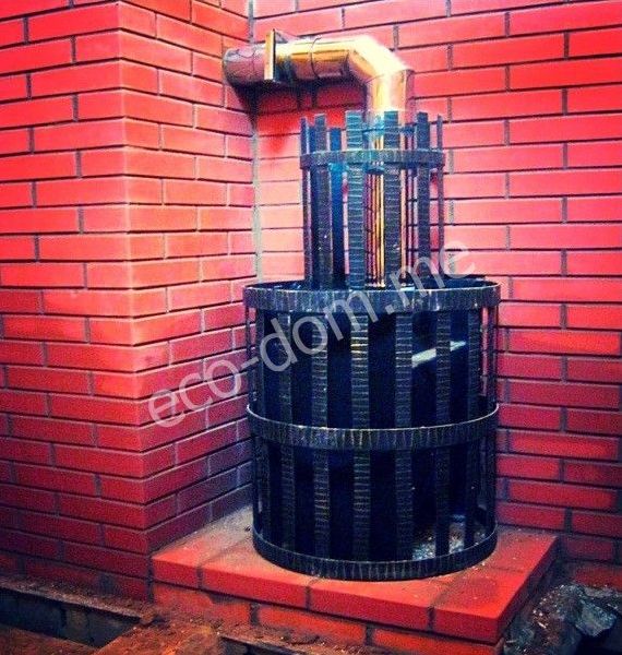 Снаружи выполнена из «Кирово-Чепецкого» кирпича, печное литьё «Везувий», печь для парилки «Везувий», внутренний сердечник из шамотного кирпича, печная смесь «Костромская». Эта печь хорошо подходит для саун и бань, т.к. в себе содержит две печи, одна для парилки и как камин, вторая для отопления помещения ( если отапливаемое помещение большое, то можно вмонтировать котёл). Печь можно выполнить из «Витебского» кирпича, тогда цена будет ниже. По желанию клиента, выполнить можно в разном цвете. Стоимость за данный вид указана без учёта трубы и фундамента.