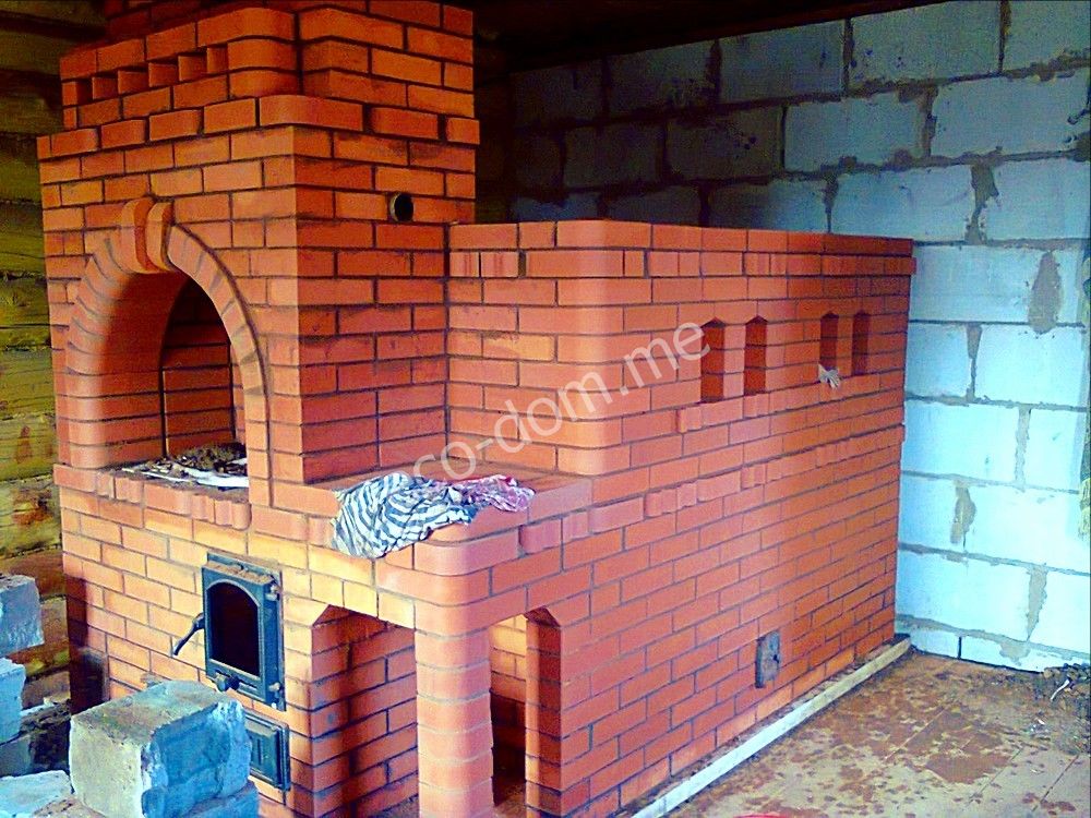 Снаружи выполнена из «Витебского» кирпича, печное литьё «Везувий», внутренний сердечник из шамотного кирпича, печная смесь «Костромская». Эта печь отличный выбор для тех, кому нужна функциональная печь, занимающая малую площадь. На печи можно готовить, также сушить грибы, ягоды и т.д. Дверка со стеклом (видно открытый огонь) создаст атмосферу уюта. Также можно вставить дверку закрывающую плиту, создаёт эффект духового шкафа. Если отапливаемая площадь большая, то можно вставить котёл под отопление. Стоимость данного образца без учета трубы и фундамента.