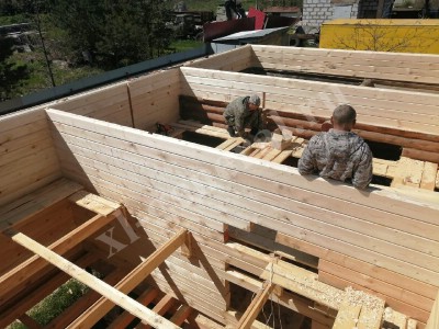 Ленинградская область реконструкция бани из профилированного бруса 190*140 мм камерной сушки по индивидуальному проекту (6*9)м.