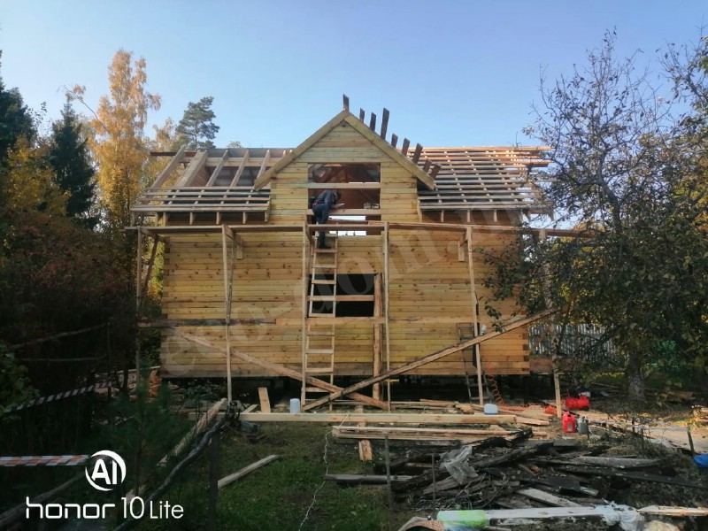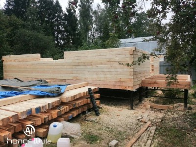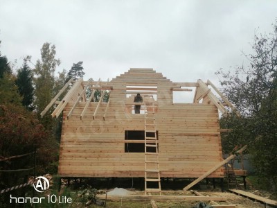МО Лосино-Петровский район СНТ "Воря" дом из профилированного бруса 145*145 мм по индивидуальному проекту (6*9)метра,полутораэтажный дом.