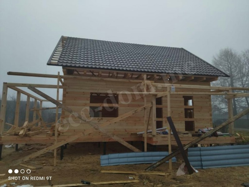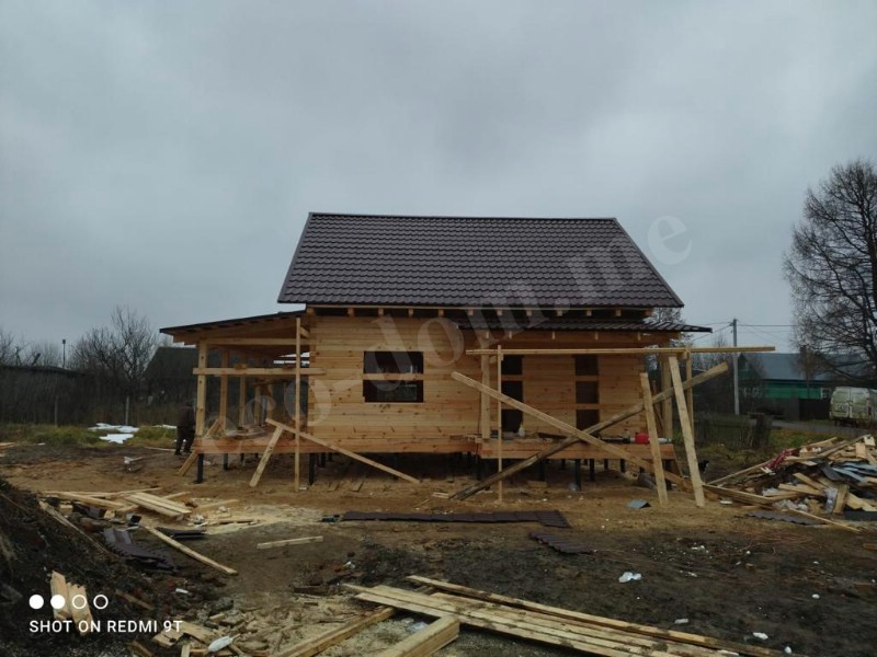 МО Волоколамск д.Чертаново дом из профилированного бруса 145*145 мм естественной влажности по индивидуальному проекту (8*8)метра,с жилой мансардой.