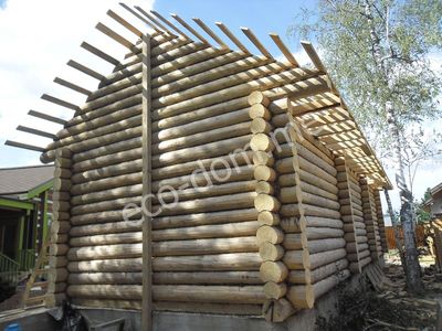 Но через месяц, 07.06.17, как договаривались, приехала бригада строителей. За неделю залили фундамент. По началу ходил контролировал процесс, но это было лишнее, так как делали они, как говорится "по-людски" - на совесть, чтобы потом не краснеть. После того, как выстоялся фундамент завезли материал и начали строить. Про материал - брус хорошего качества, ровный, зимний. Брус немного потрескался под солнышком, но не сильно.