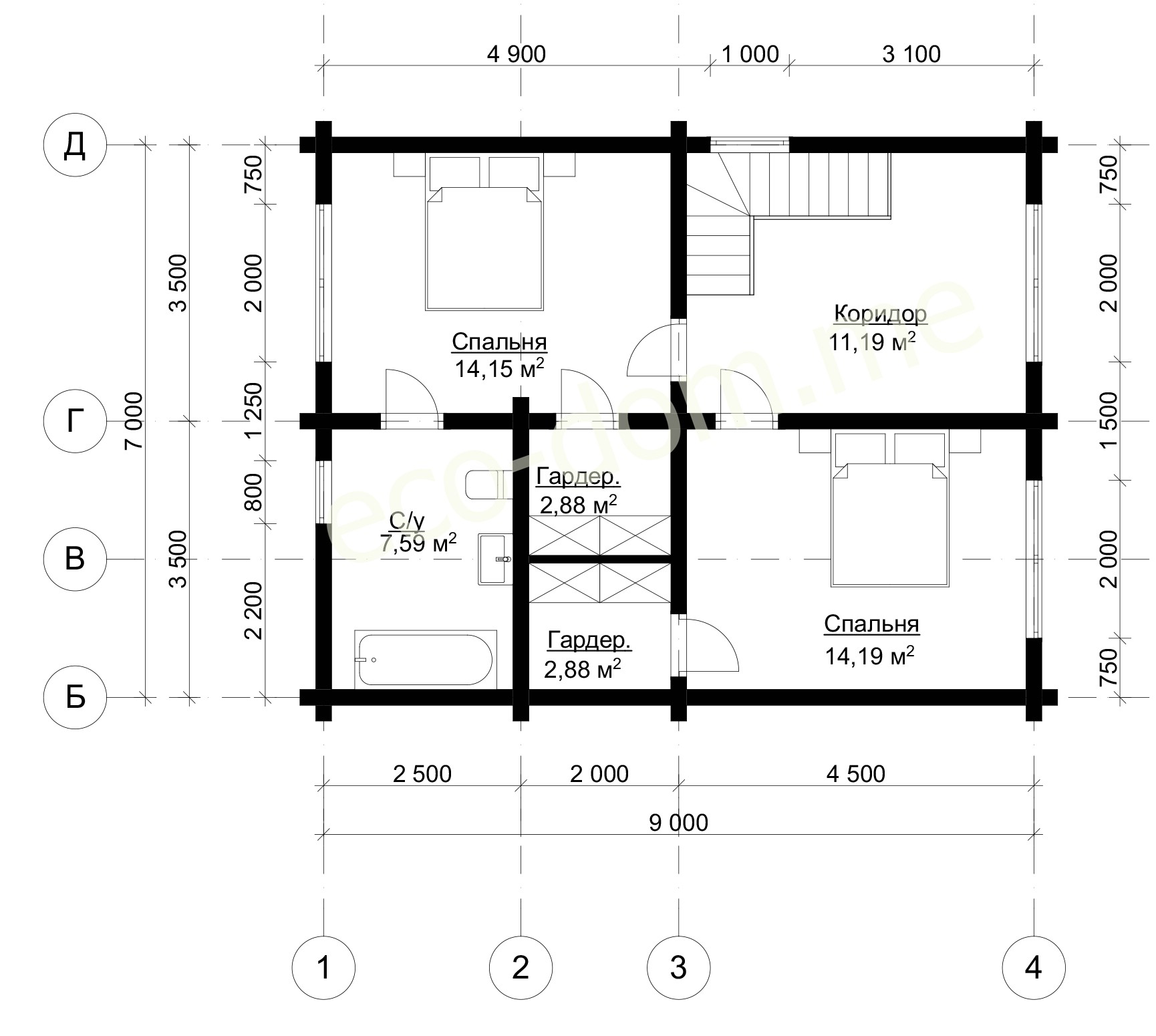 Высота стен второго этажа 1,5 метра