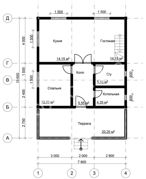 План схема Проект дома из бруса 11х8 № ДБ-104
