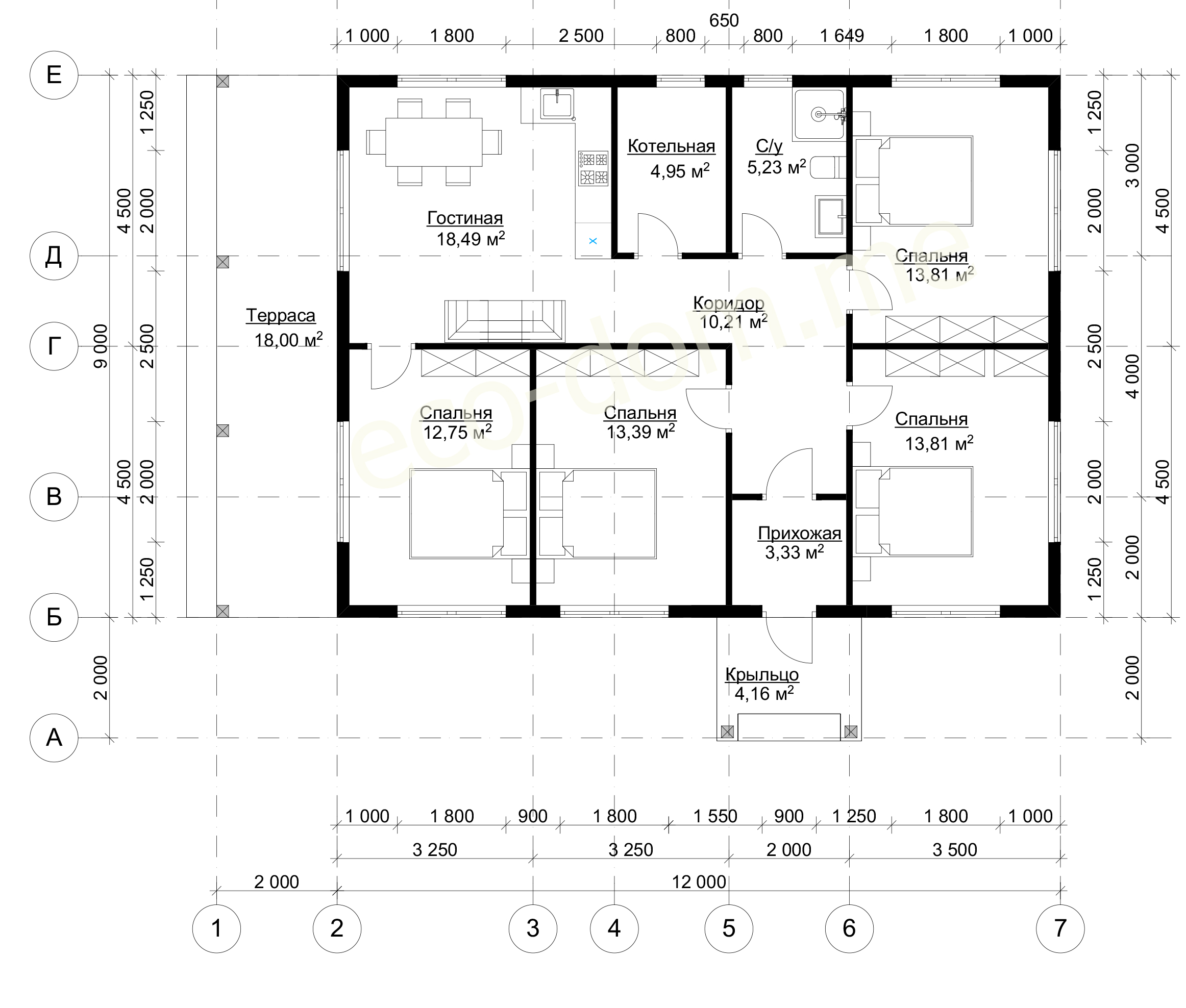 • Внутренние перегородки,в зависимости от комплектации,возможно каркасного типа либо из бруса(уточнять);