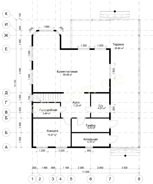 План схема Проект дома из бруса 13x11 № ДБ-130