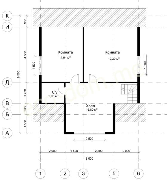 План схема Проект дома из бруса 9X8 № ДБ-132