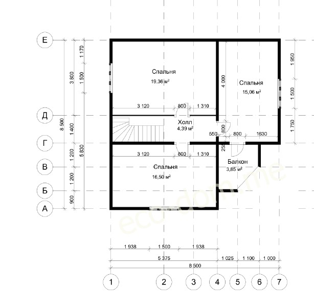 1. Брус 150х150 мм на наружные несущие стены;