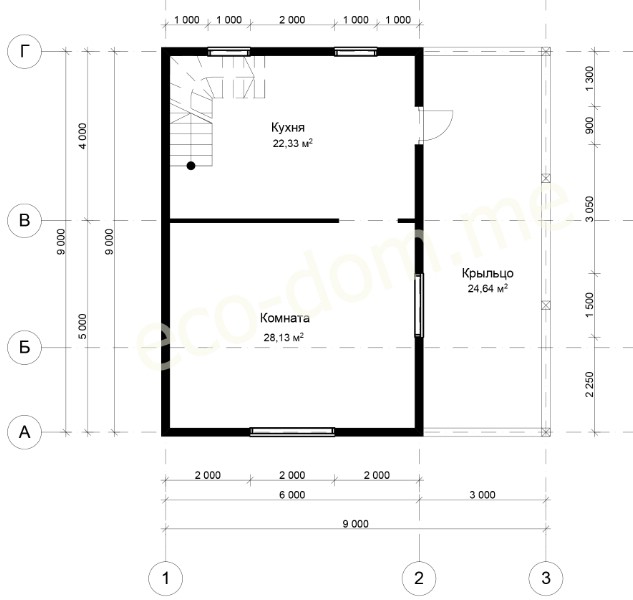 Высота стен первого этажа: 2,5 метра.