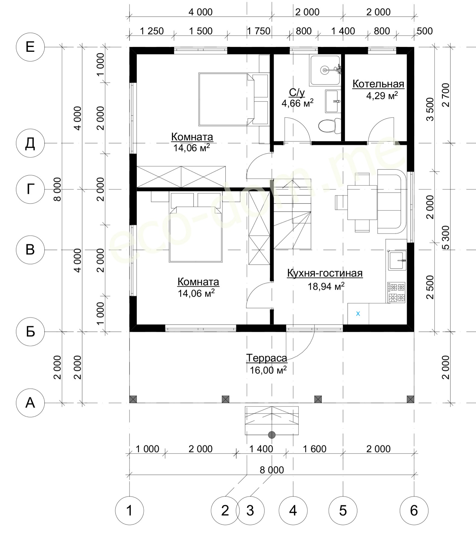 1. Брус 150х150 мм на наружные несущие стены;