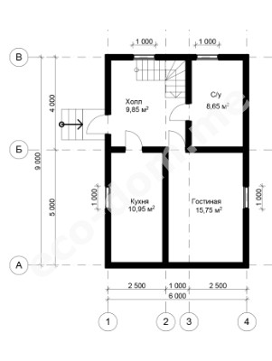 Проект дома из бруса 9х6 № ДБ-99