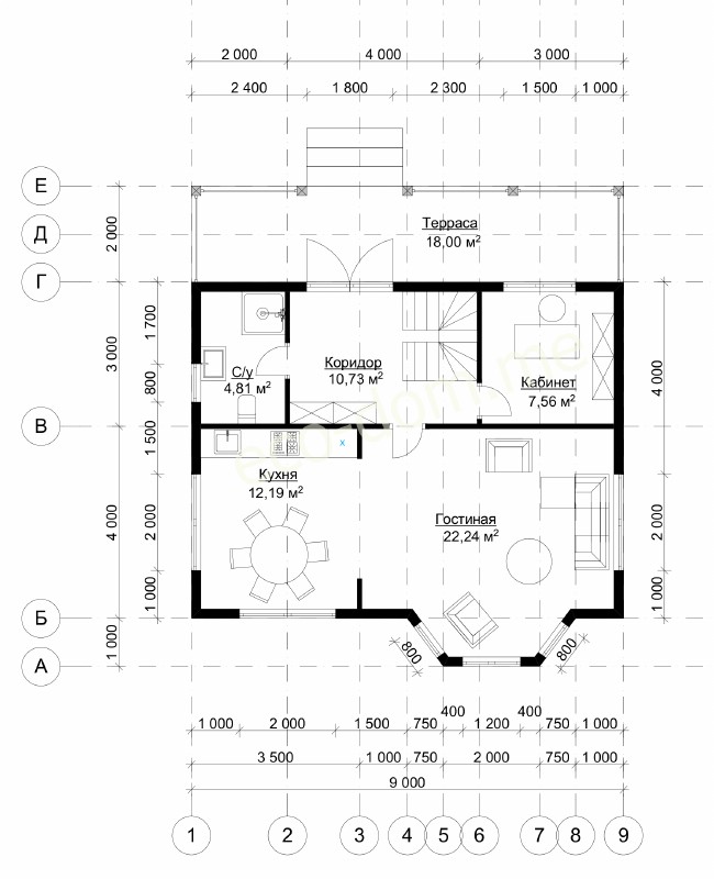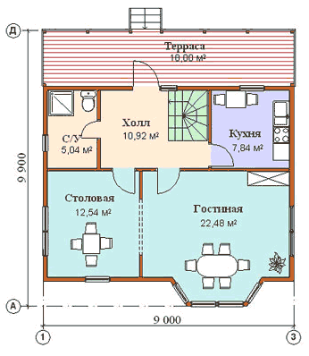 План схема Проект дома из бруса 10х9 № ДБ-67