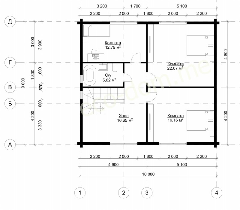 Проект двухэтажного дома из бруса 9 на 10