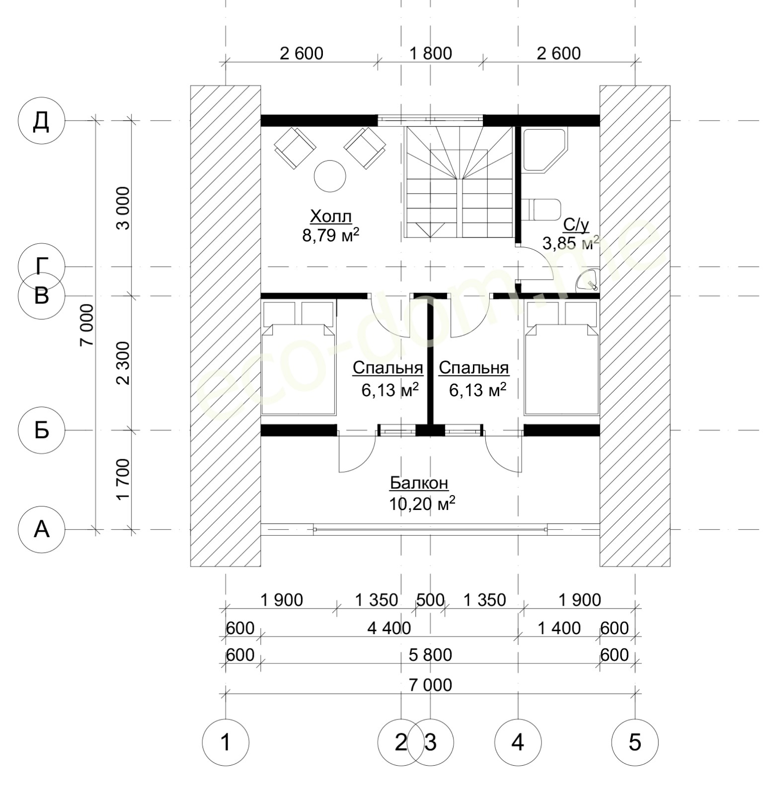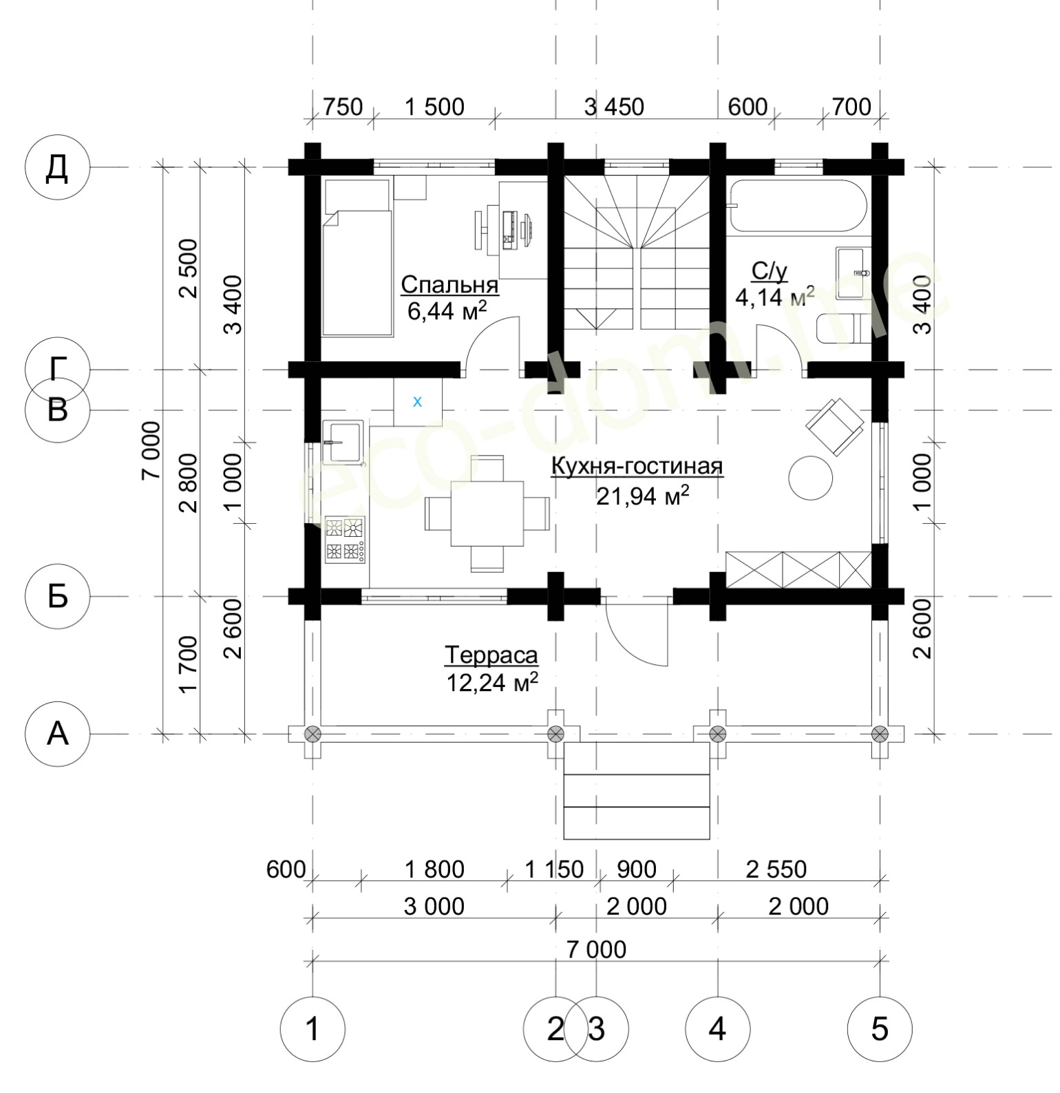 Проект дома из бревна 6х7 № ДиБ-01 Проект дома из бревна 6х7 № ДиБ-01