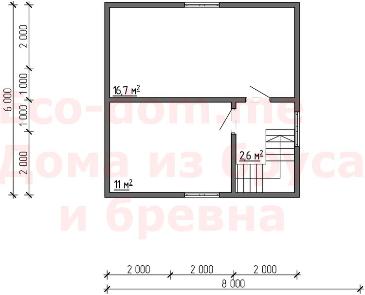 Высота стен 2-го этажа 3 метра.