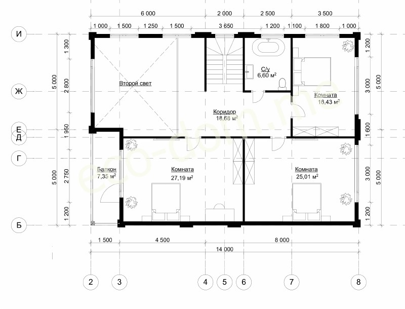 2. Внутренние стены клееный брус 120*140 мм;