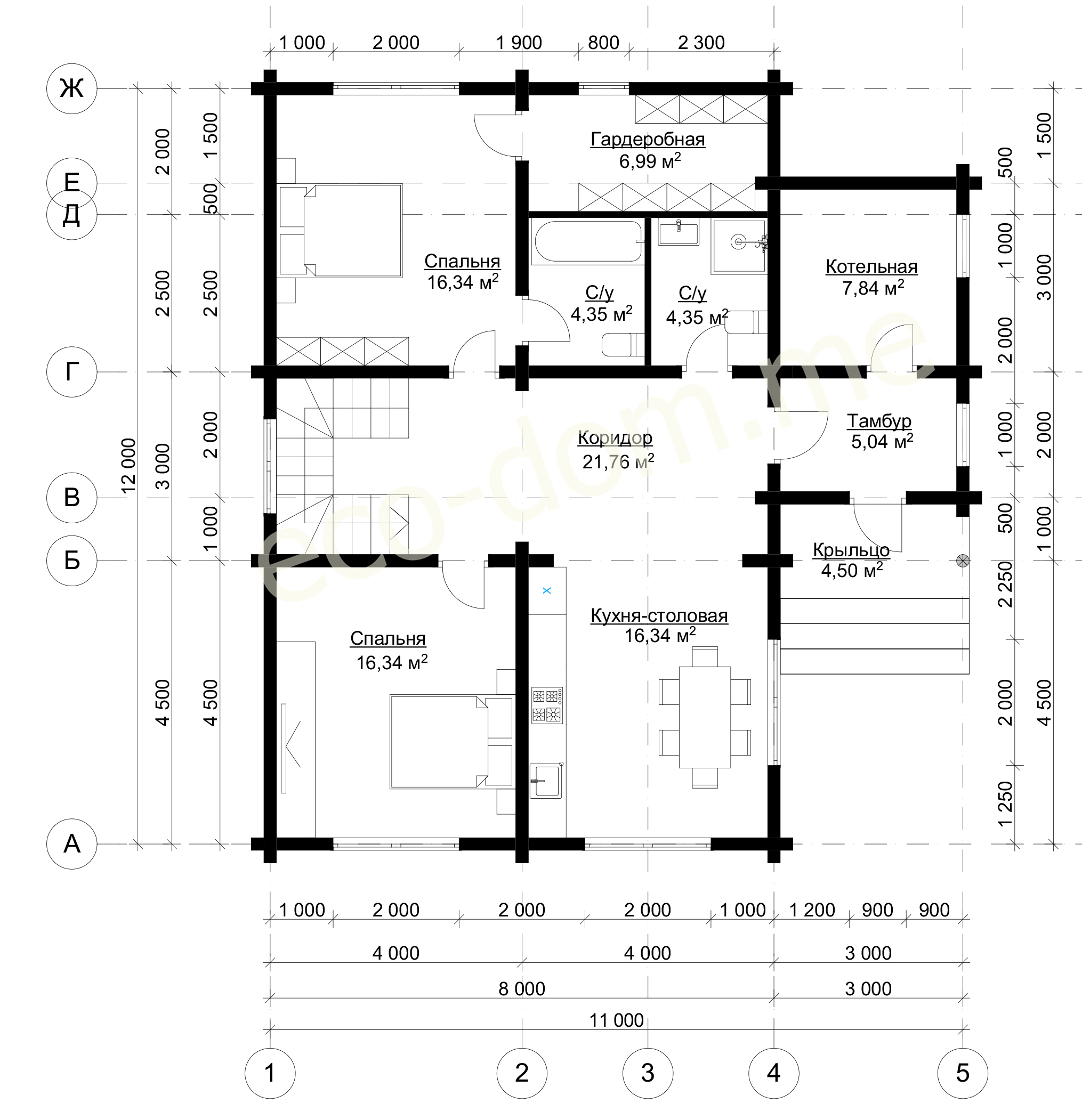 План схема Проект дома из оцилиндрованного бревна 12х11 № ДиОБ-02
