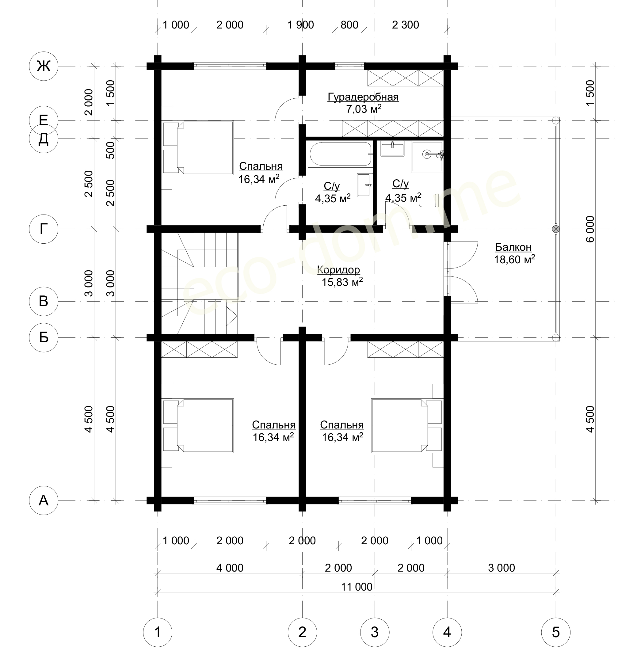 Проект дома из оцилиндрованного бревна 12х11 № ДиОБ-02 Проект дома из оцилиндрованного бревна 12х11 № ДиОБ-02