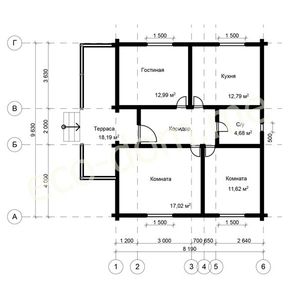 План схема Проект дома из оцилиндрованного бревна 10х9 № ДиОБ-71