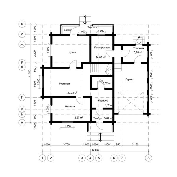 План схема Проект дома из оцилиндрованного бревна 12х13 № ДиОБ-72