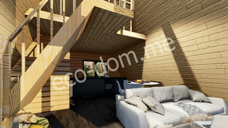 5. Имитация бруса 135*15 мм обшитие внутренней части дома по стропилам;