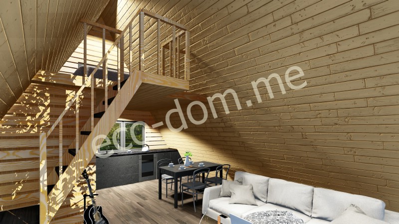 5. Имитация бруса 135*15 мм обшитие внутренней части дома по стропилам;
